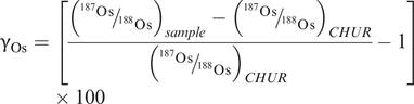 The bulk Earth has near-chondritic 187Os/188Os and any deviations are relatively small, so a percentage variation from CHUR is easily expressed using the expression: