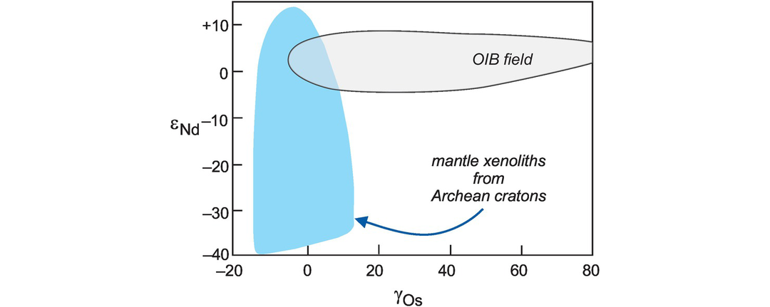 In Section 6.3.3 we described a range of ‘mantle evolution diagrams’ which summarise how the composition of the mantle has evolved over time for the different isotopic systems. We proposed that the Nd and Hf systems record, at least in part, the process of crust extraction and that Os isotopes can be an important tracer of recycled ancient oceanic crust. The more complex Pb isotopes record the evolution of mantle domains with different μ values over time.