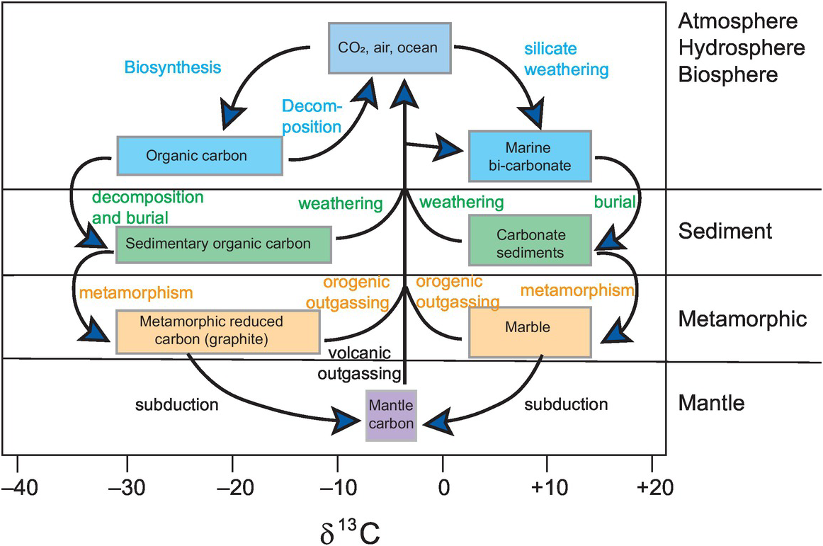 Carbonate-rich sediments show the largest isotopic variation in Mg isotopes of all natural materials and have δ26Mg between −5.57 and −0.38‰. Relative to aqueous solutions abiogenic carbonates preserve fractionations of up to ~4.8‰. Dolomitic samples are at the heavy end of this range, whereas calcitic samples are lighter, indicating some mineralogical control on Mg isotope fractionation. In biogenic carbonates large fractionations of δ26Mg > 4.5‰ have been observed, giving rise to carbonates which are isotopically lighter than seawater. Marine sediments adjacent to subduction zones have δ26Mg values in the range −3.65 to +0.52‰ with calcareous oozes contributing to the lighter values and clastic materials the heavier values. Clastic sediments have δ26Mg between −0.57 and +0.92‰ (Teng 2017).