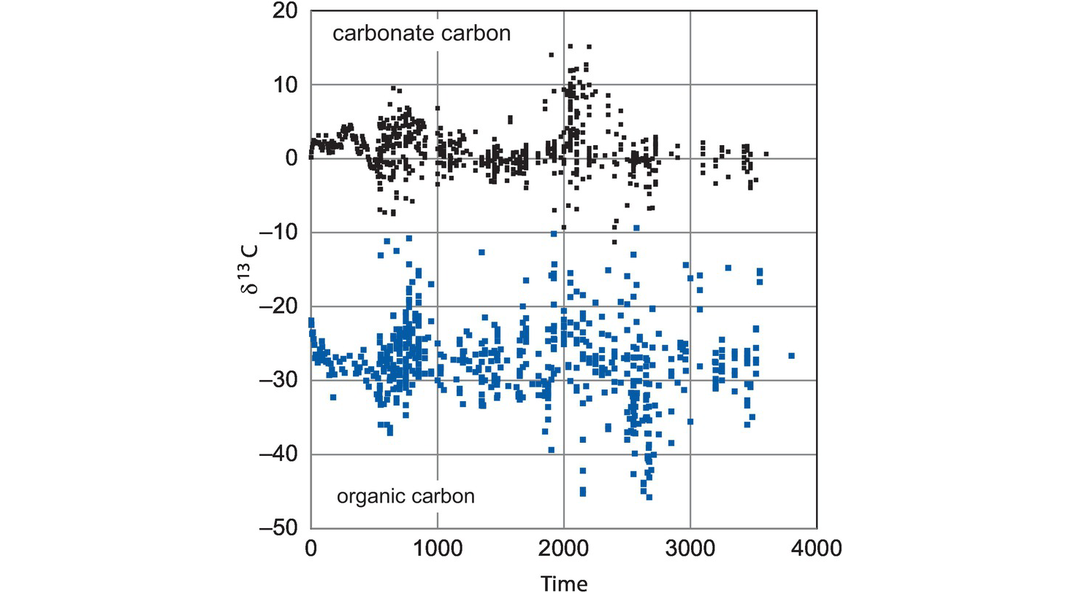 Iron isotopes also serve as a useful proxy for palaeo-redox conditions, for prior to the GOE it is thought that the Earth’s oceans were anoxic and rich in isotopically light δ56Fe. The black shale iron isotope archive shows a wide range of values in samples from the early Proterozoic and the Archaean (δ56Fe = +1.0 to −3.5‰) but a much narrower spread in rocks younger than about 2.3 Ga. This difference is thought to reflect a change in the redox state of the global oceans related to the oxygenation of the Earth’s atmosphere during the GOE at 2.34 Ga. Similarly, there are large iron isotope fractionations in Archaean and Proterozoic banded iron formations (BIF) prior to 1.8 Ga (δ56Fe = −2.5 and +2.0‰), although it is unclear how much of this fractionation is primary and how much is the product of post-depositional processes (Dauphas et al. 2017).