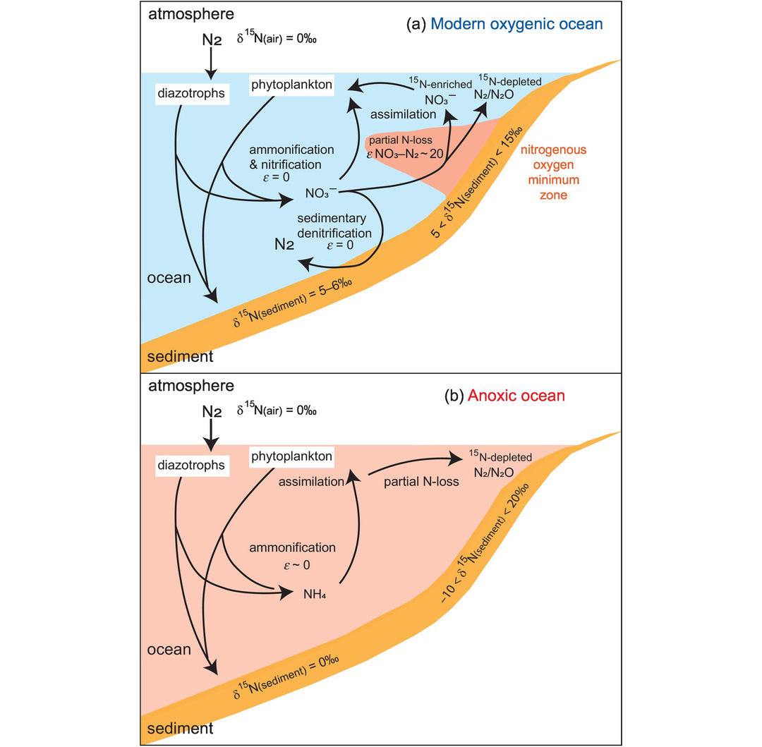 A relatively recent application of Cr isotopes has been to use δ53Cr values in sediments as a palaeo-redox proxy and to determine the onset of oxygenic photosynthesis. This approach has been applied to the study of banded iron formations, organic-rich shales and carbonate rocks. The logic is that in an oxygenated atmosphere Cr can be oxidised to Cr6+, mobilised and isotopically fractionated. In an oxygen-free atmosphere Cr is transported as Cr-bearing minerals or as dissolved Cr3+ but is not fractionated. However, despite this simple theoretical framework, care must be taken to ensure that the sediments analysed faithfully record the ambient δ53Cr for seawater. Consequently, corrections may need to be made for the presence of detrital material in the sediment (Frank et al., 2020) and for any biological Cr isotope fractionations. Further, geochemical controls on the oxidation of Cr require both the presence of Mn oxides, which in itself requires free oxygen, and a surface environment free of Fe2+.